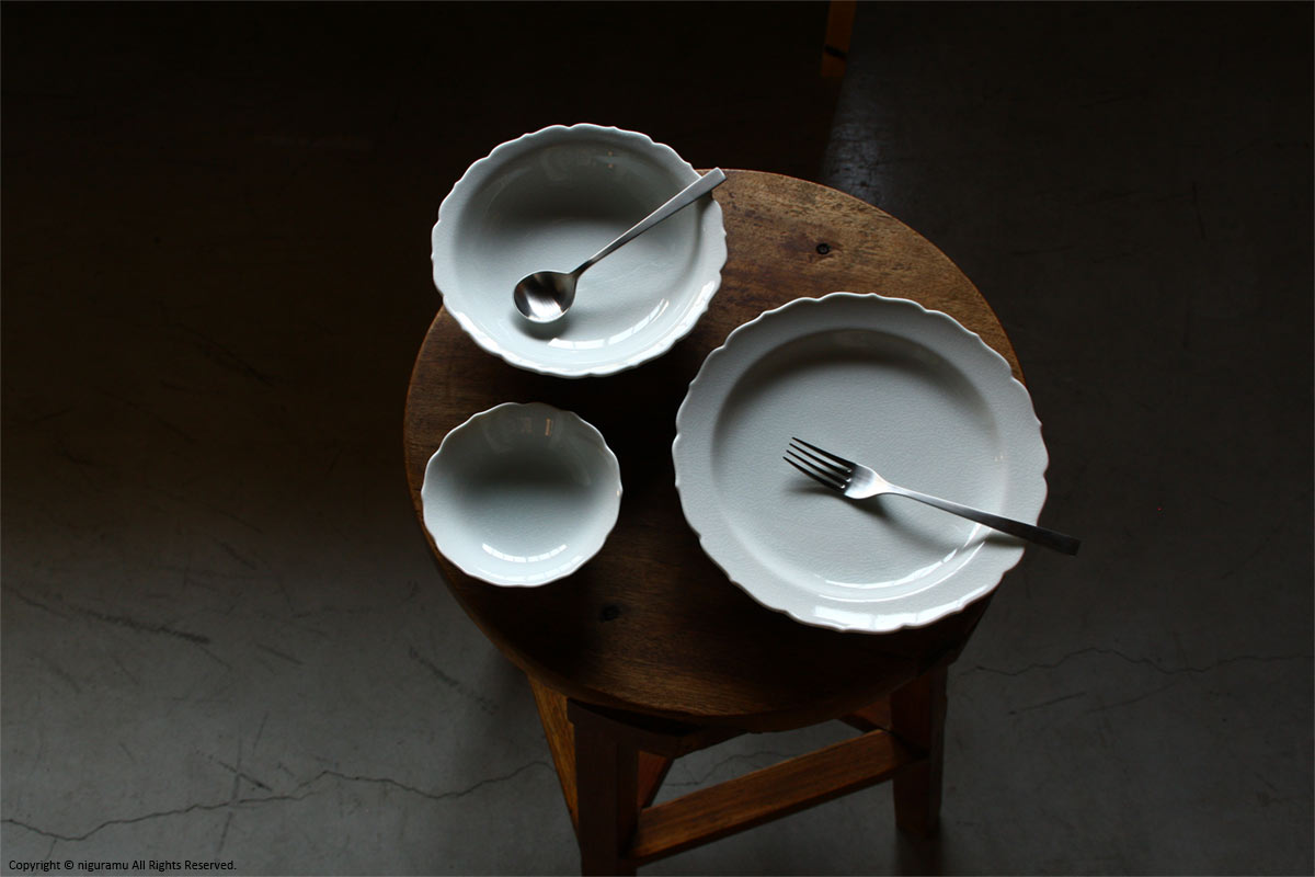 - プレート表面に、裏面の高台収縮による凹みがある場合があります。土からの成型後の乾燥時・焼成による歪み等です。焼物の特徴とご理解下さい。